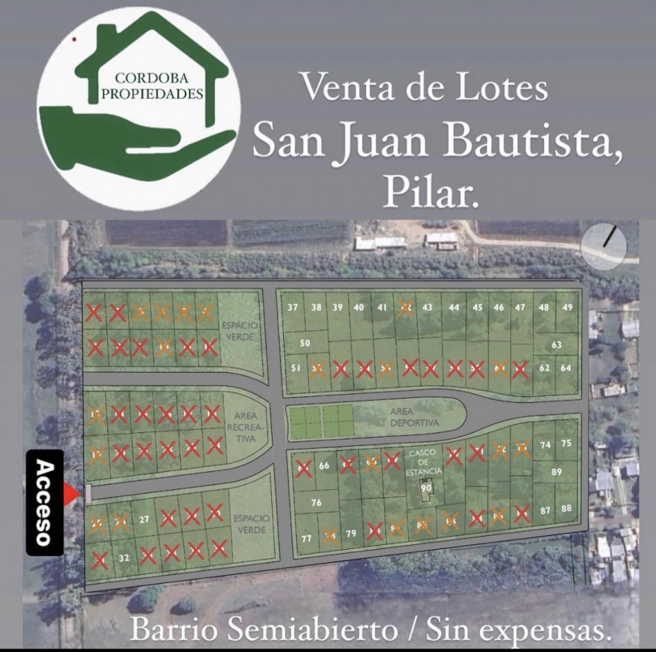 El emprendimiento San Juan Bautista es un barrio abierto ubicado en el partido de Pilar, a 1 cuadra de la ruta 25, y a 10 cuadras de la calle Roberto Camaño. Este emprendimiento se desarrolla bajo una modalidad de precio cerrado, y diferentes opciones de financiación en cuotas fijas para planes de 12 y 24 cuotas. Diseñado en forma tal de mantener las arboledas existentes, contará con calles con cuneta, redeléctricaaérea, alumbrado LED.